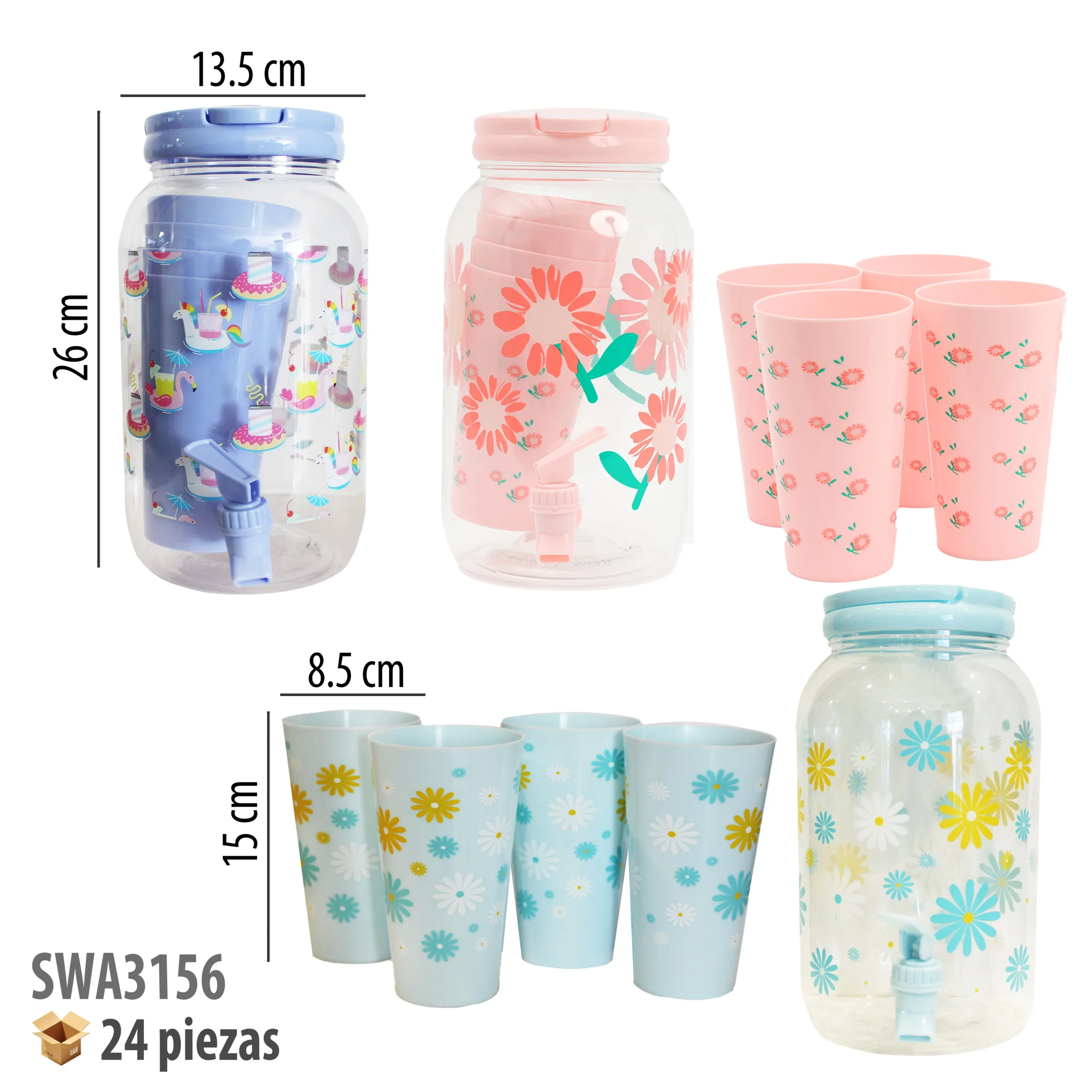 JARRA 3.8 LT CON 4 VASOS